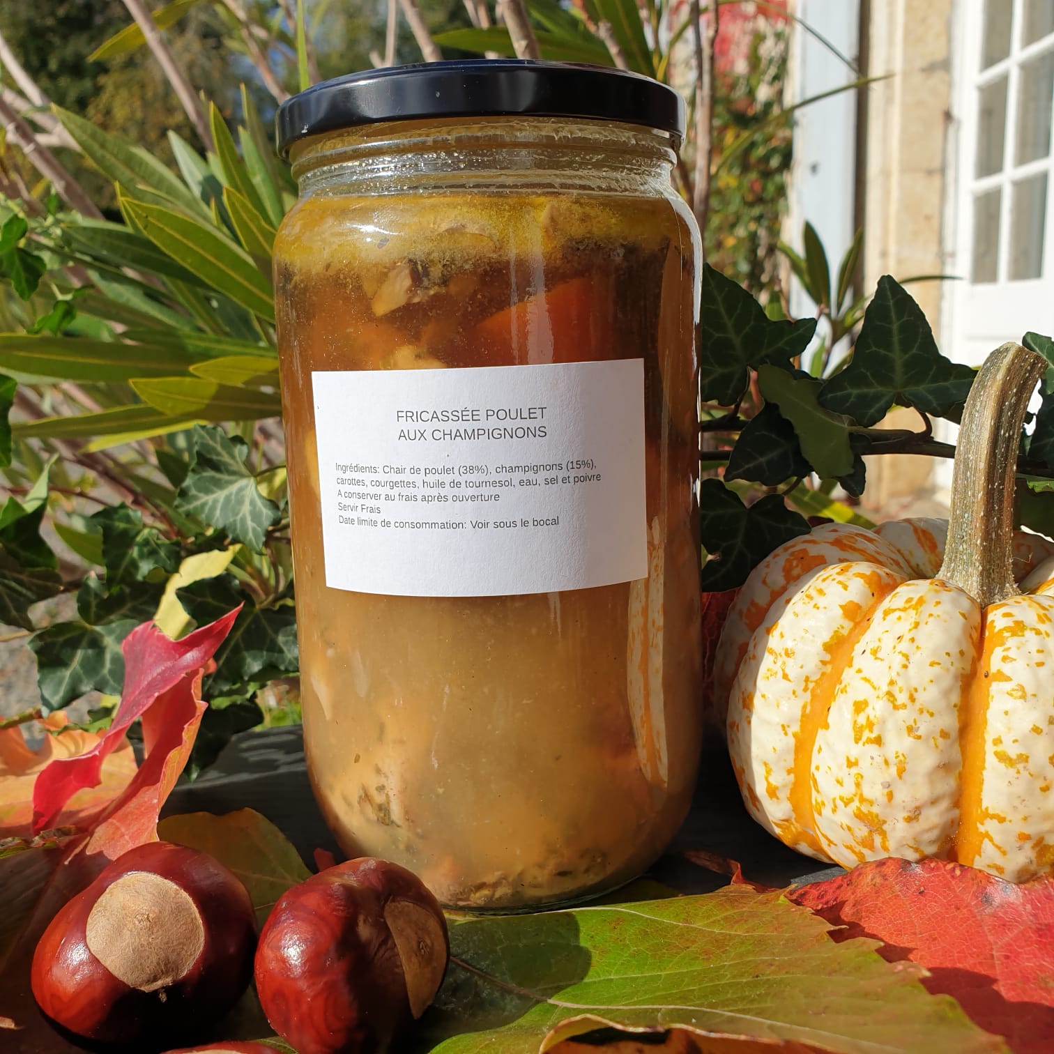Cuisiné à partir des poulet de notre exploitation et de légumes et aromates locaux.